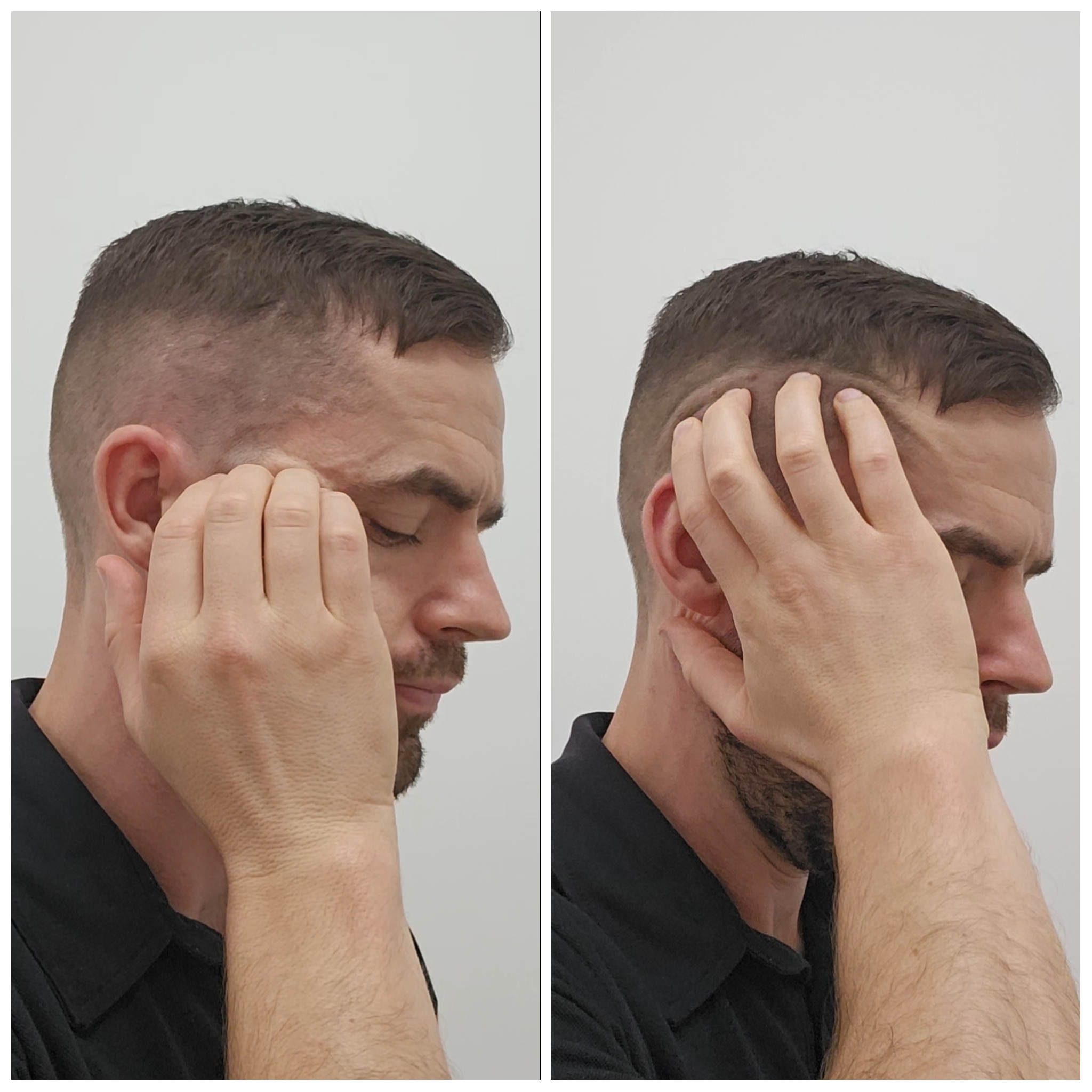 - Walk your fingers up onto the side of your head