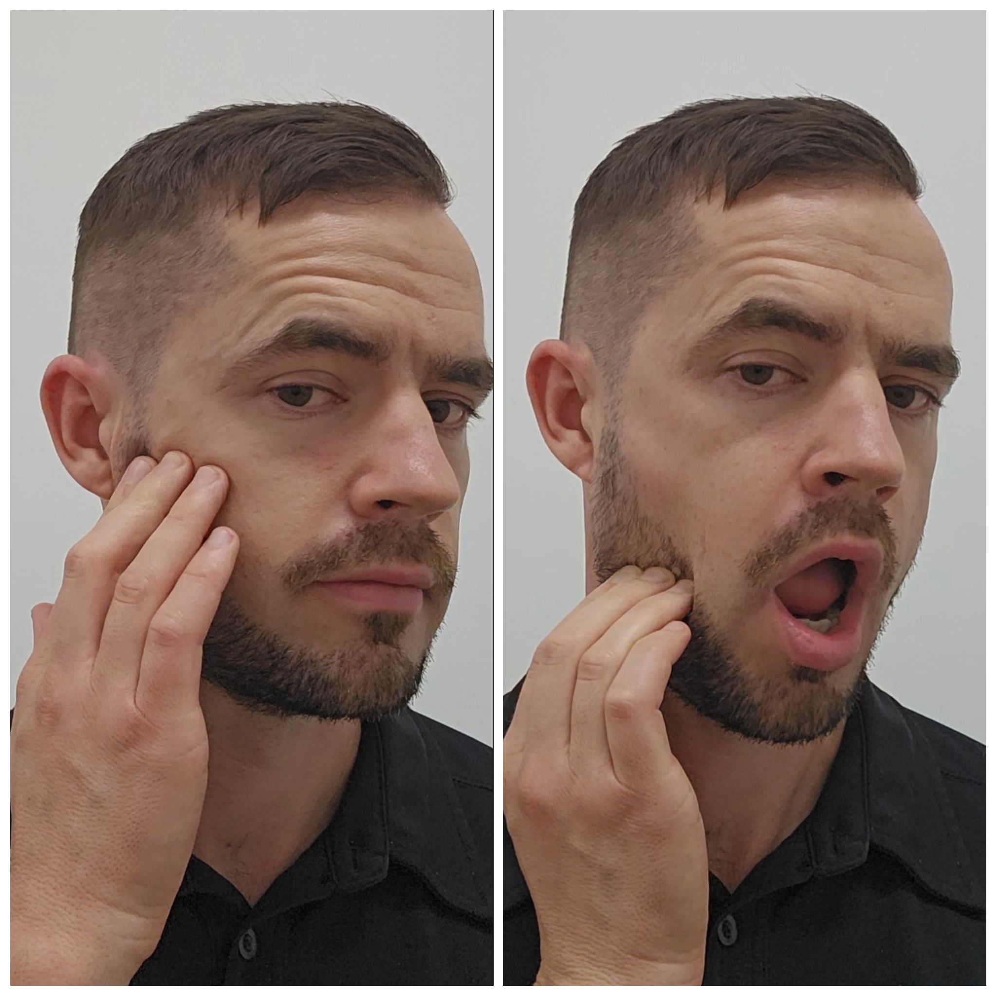 - Gently clench your jaw to feel the muscle activate under your fingers.